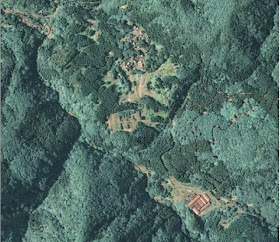 直近の空中写真。棚田が広がっていたところは多くが杉林に転用され、あとは放棄水田になった。