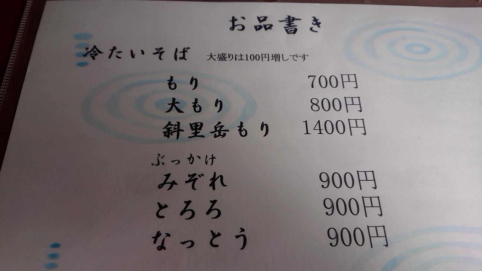 これは「ざるそば」である。「もりそば」ではない。なぜかというと海苔が乗っているからである。これだけで50円くらい値段が違うのは「江戸七不思議」のひとつである。