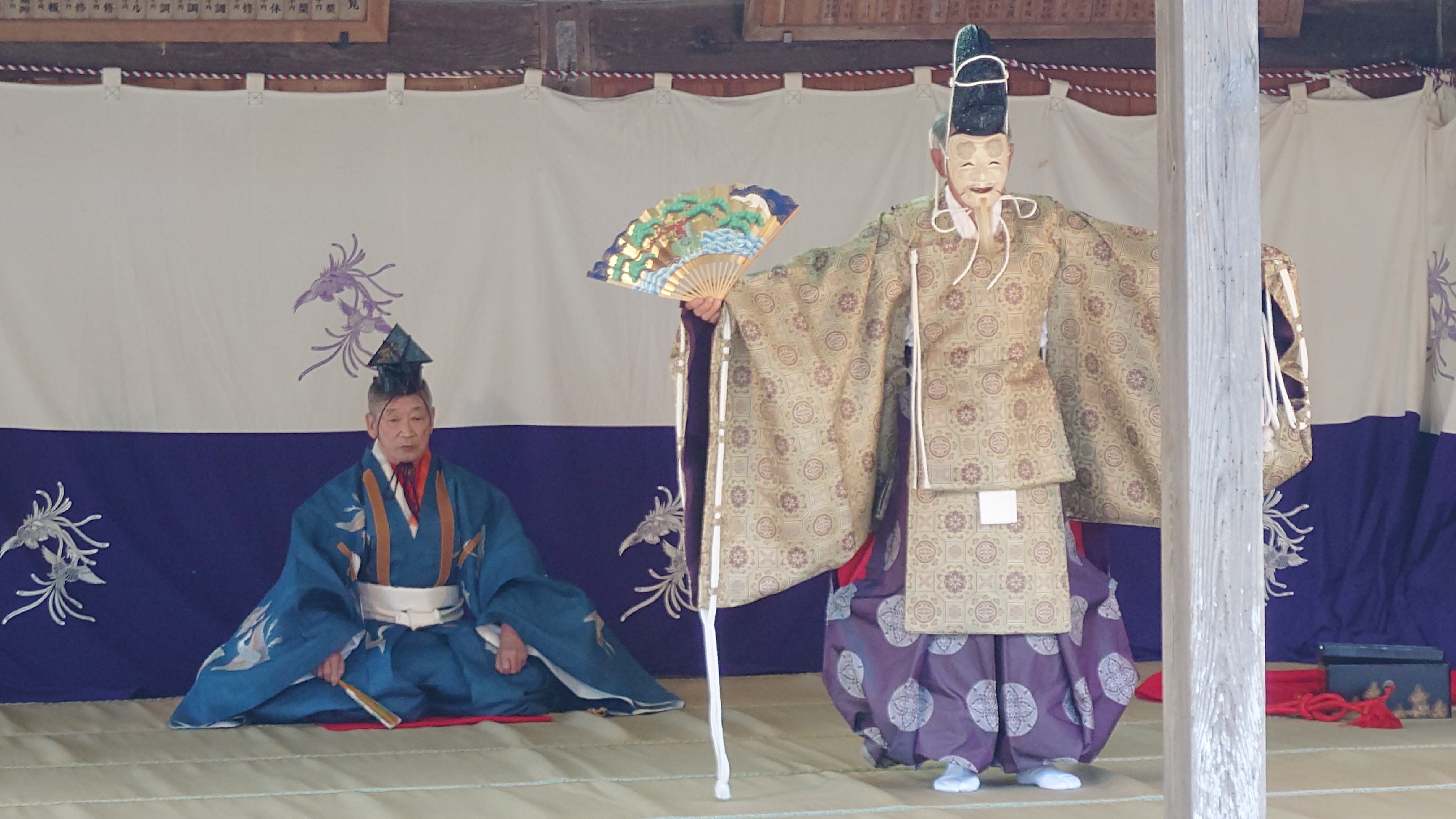 例年だと神社での奉納は豊栄の舞だけだったのだが、今年から新たに加わった一人翁。なかなかに味わい深い。